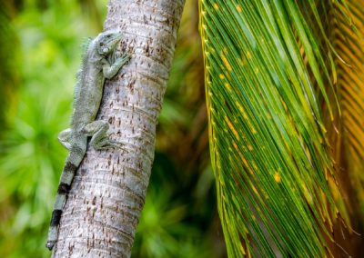 Les iguanes aiment particulièrement la variété d’espaces naturels présents dans les villes. Plages paradisiaques, eaux cristallines et cocotiers sont des endroits propices à la rencontre de ces animaux atypiques. L’iguane est un petit reptile inoffensif qui peut mesurer jusqu’à 2 mètres.